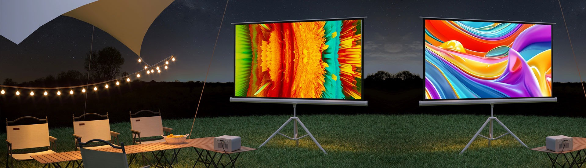 Portable Outdoor 4K Anti-Light Movie Projector Screen Stand with 72 84 100 120 150 Inch Tripod Matte White Curtains